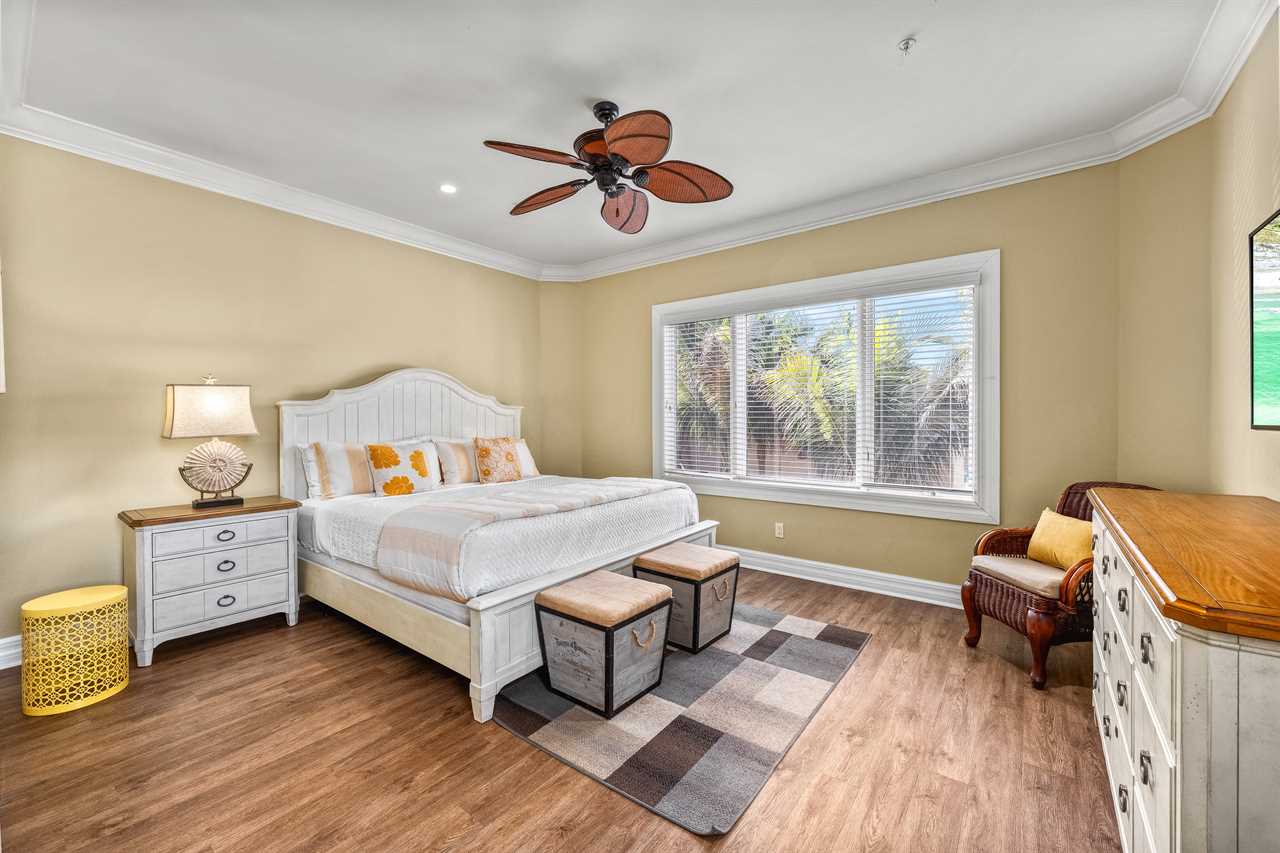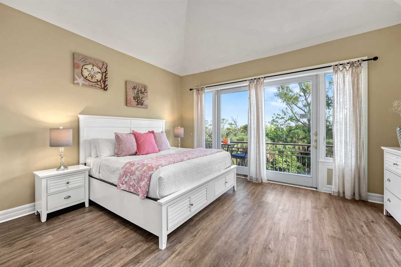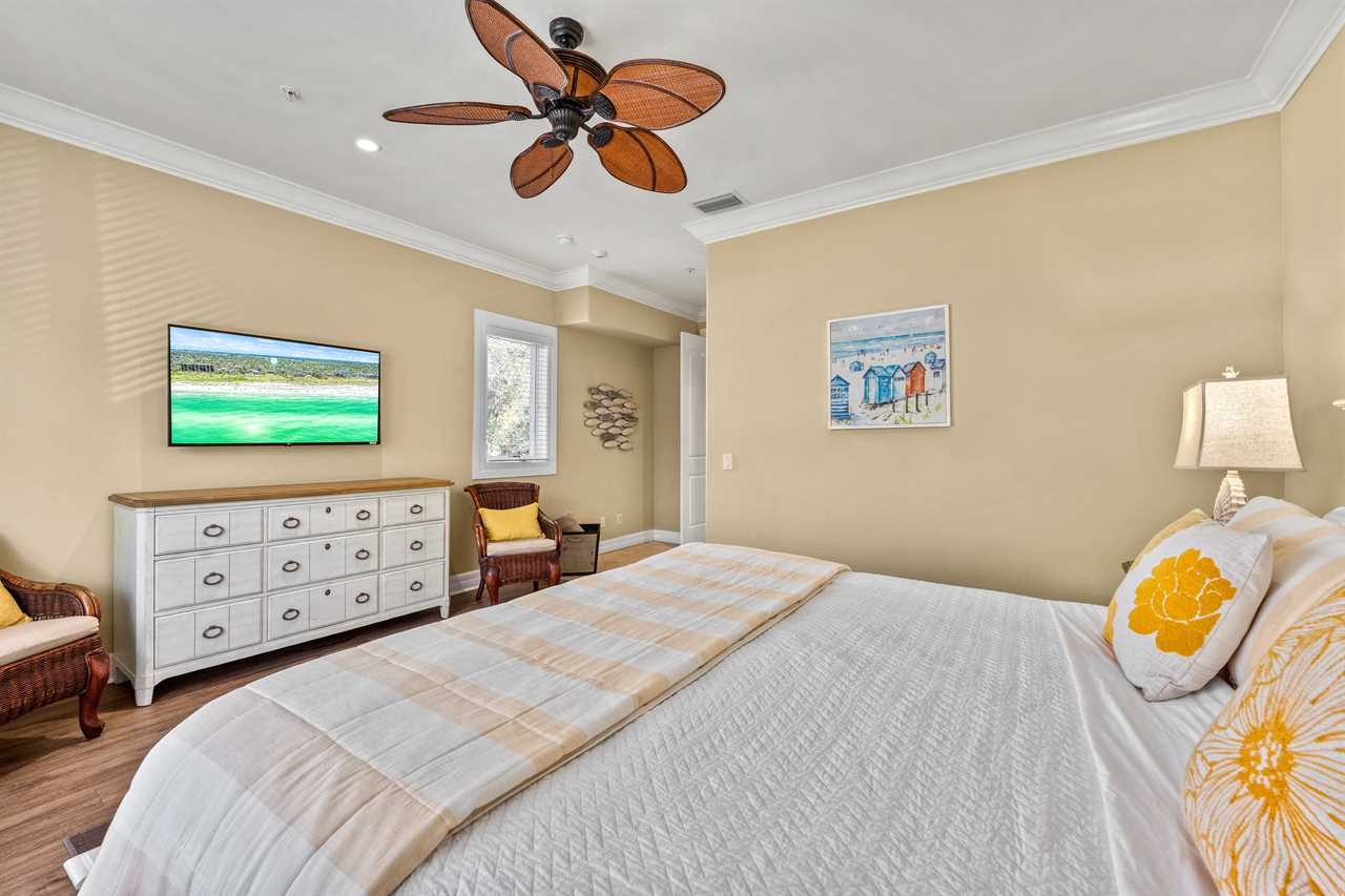 • Bedroom 3: King Bed, Hallway-Accessed Full Bathroom, Second Floor, Smart TV