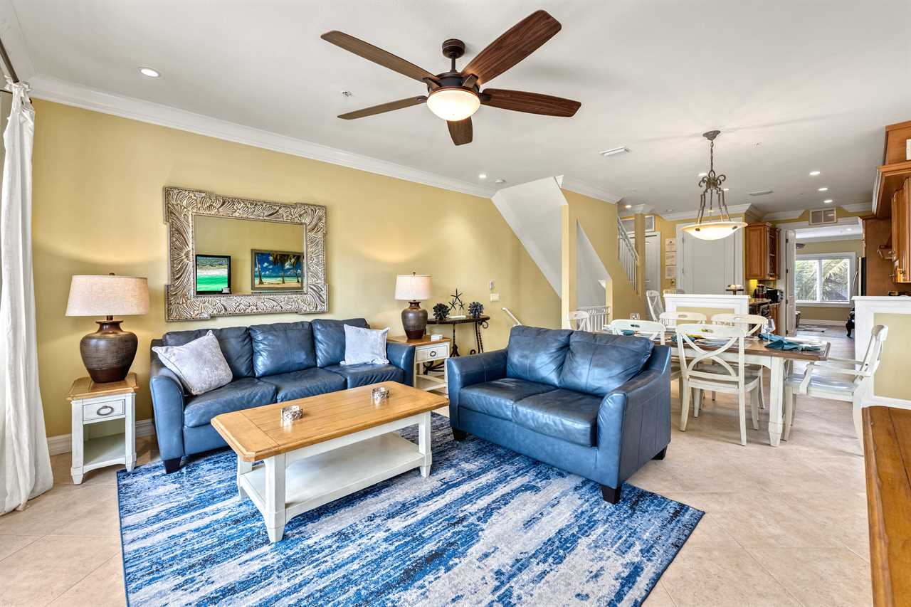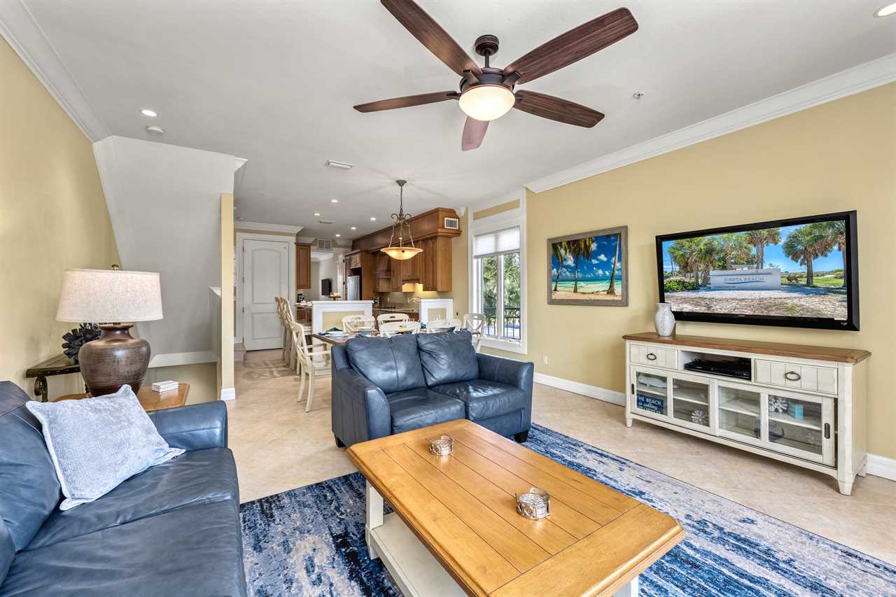 Back inside, enjoy a fresh breeze through balcony doors, cook together in the sleek, open kitchen, or unwind in the spacious living room. As golden hour sets in, gather on the rooftop for grilled dinners, cold drinks, and those iconic Gulf sunsets.