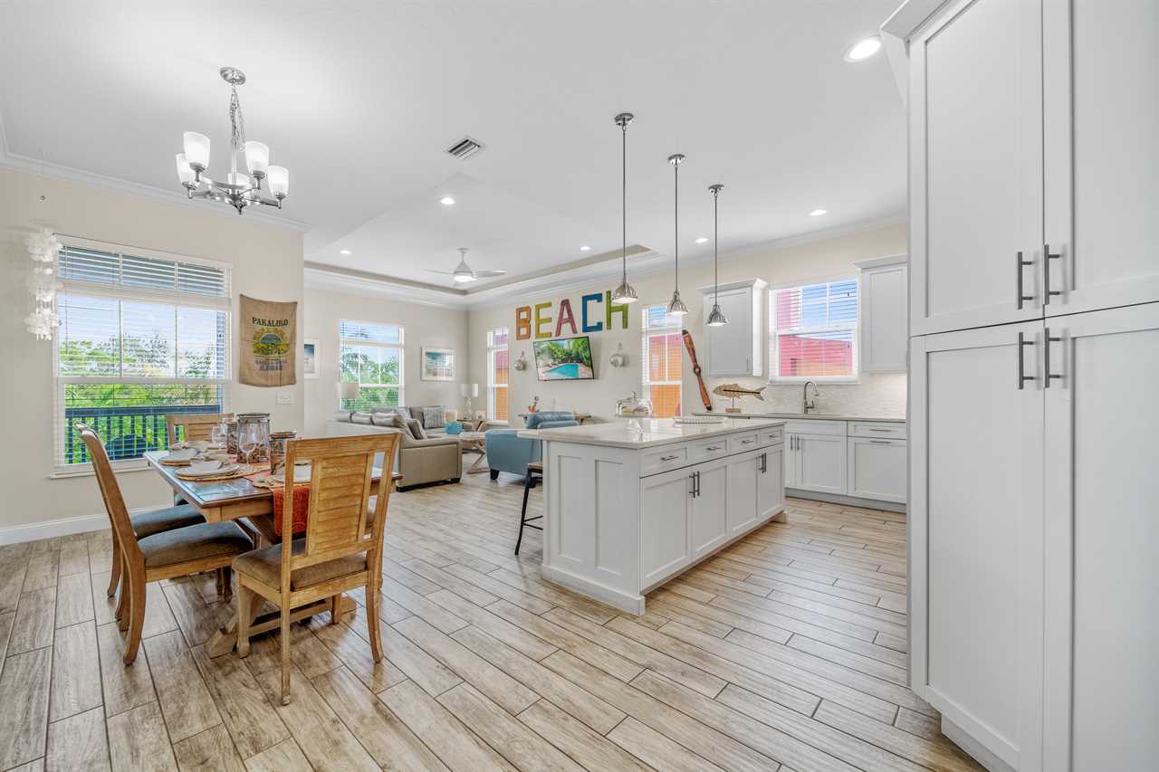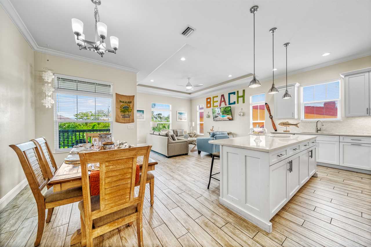 Picture your entire crew—24 guests strong—spread across two bright, beach-inspired homes. Each morning, gather on the balconies with coffee while the kids splash in two private pools below. Walk barefoot to the beach for a day of sun and surf, then head back for poolside cocktails in your private cabanas. When evening falls, some of you cook up seafood feasts in one full kitchen while others mix drinks in the other. Dine alfresco, laugh late into the night, and repeat it all tomorrow—because The Big Kahuna is built for togetherness without compromising personal space.