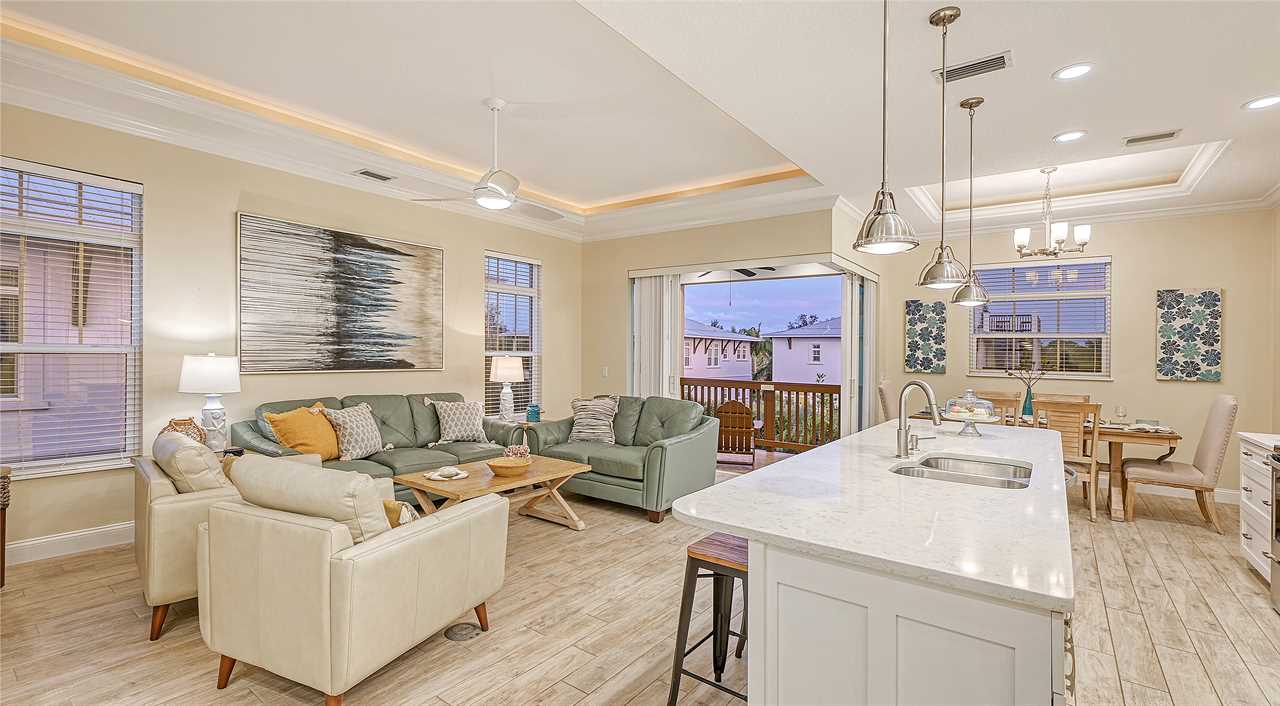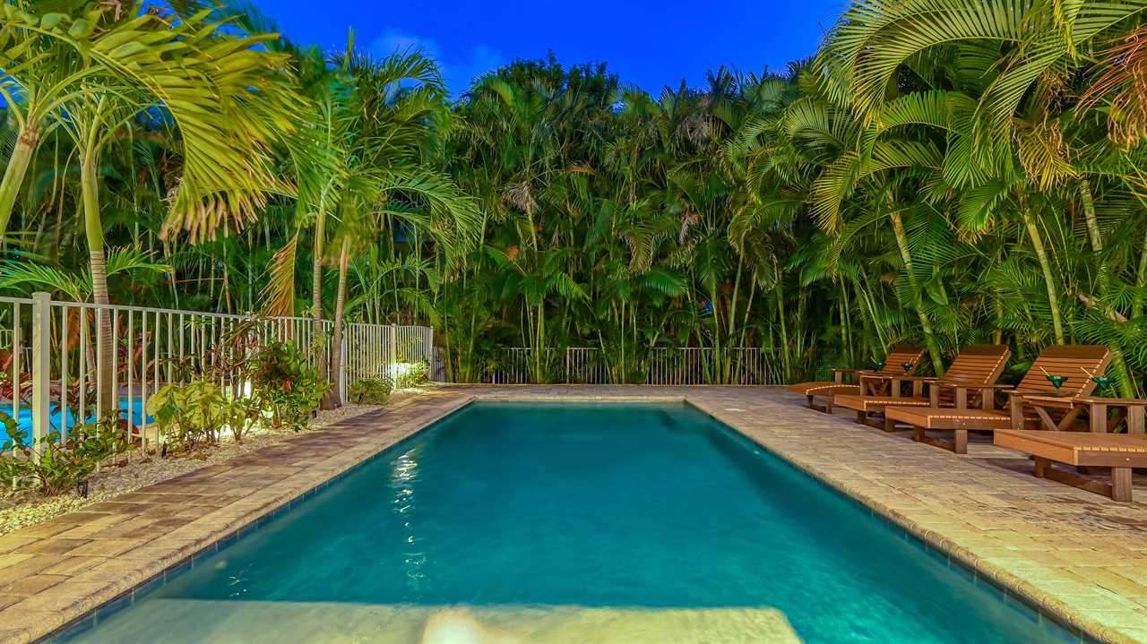 You ascend to your third-floor sanctuary, where the ceilings stretch high and the sunlight spills in through wide windows. The scent of salt air drifts through the balcony doors as you sip morning coffee above the palms. After a beach walk at Point of Rocks, your private pool and shaded cabana wait below. As the sky turns to coral at dusk, the kitchen becomes the hub for evening cooking, conversation, and laughter—all while your dog dozes nearby, completely at home.