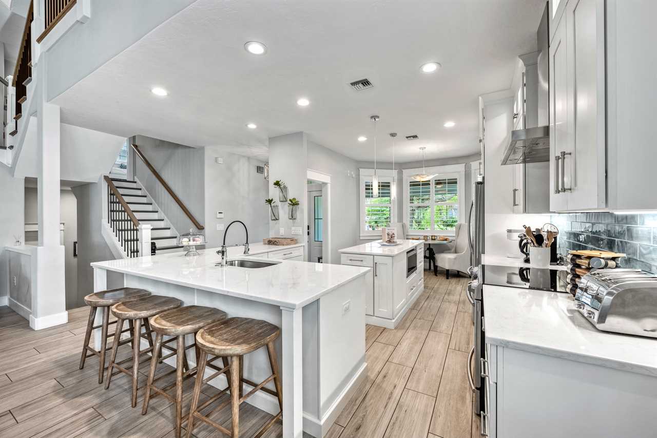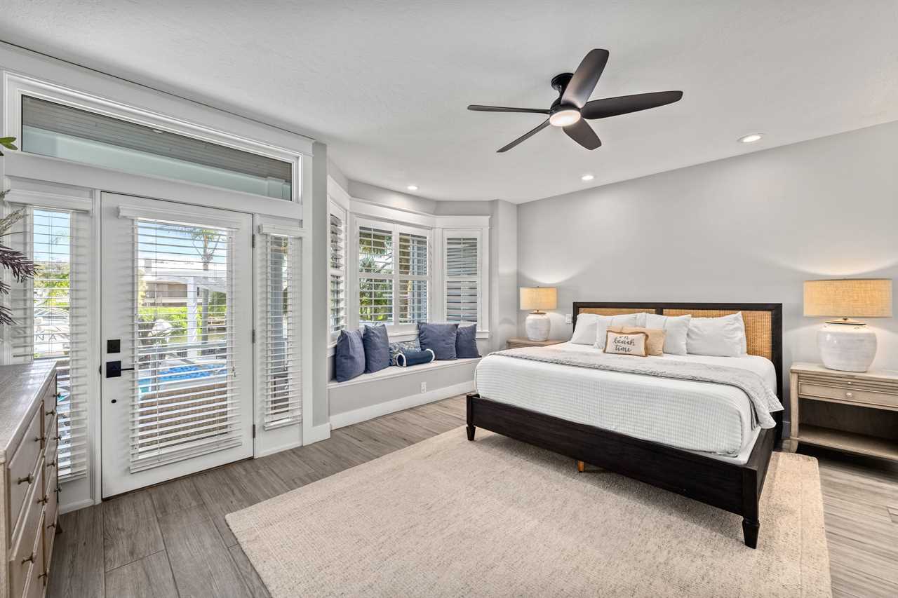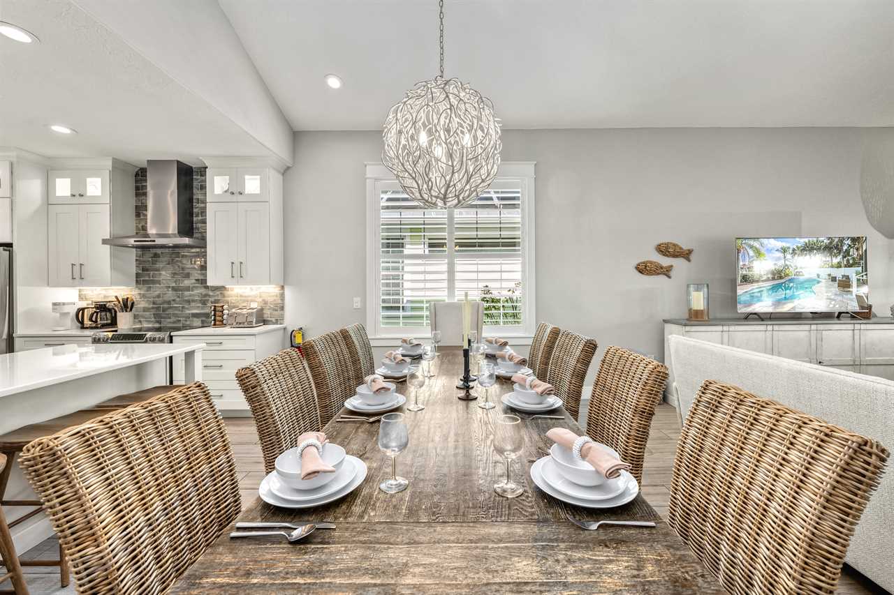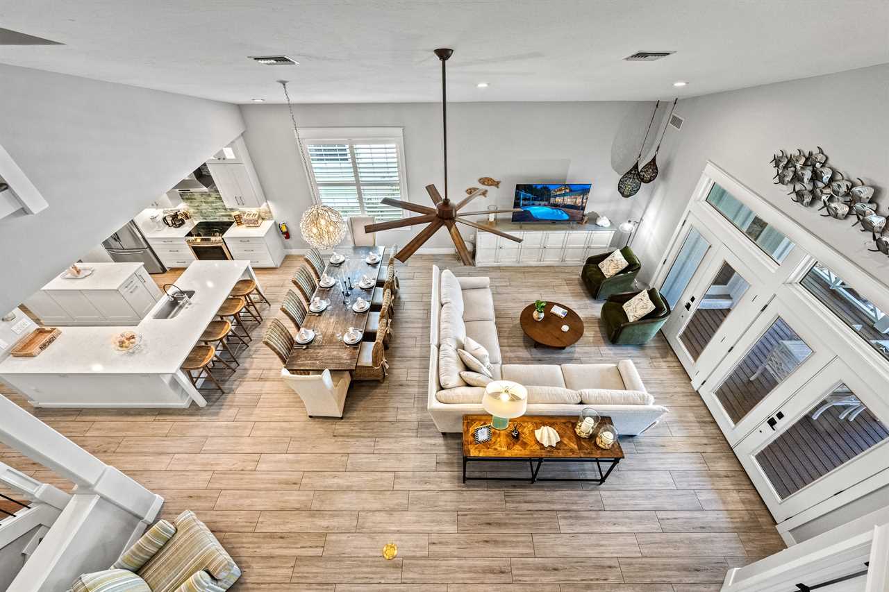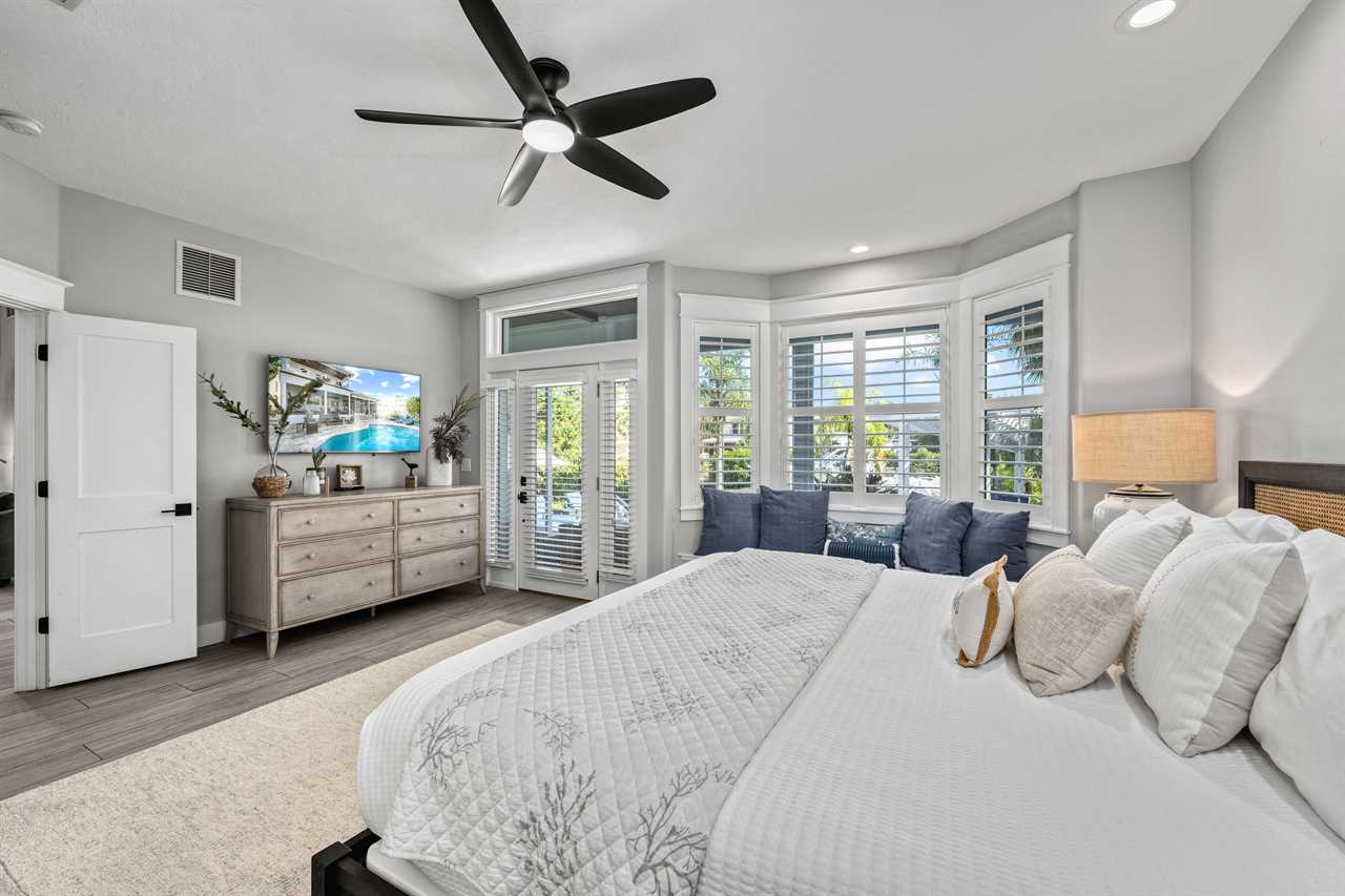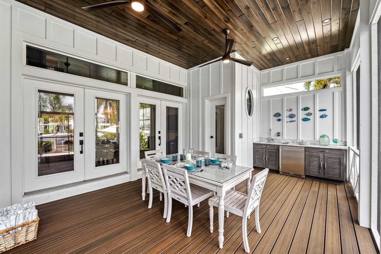 Begin your day with coffee on the main floor balcony, the canal glistening below and palms swaying in the breeze. Head inside to the gourmet kitchen to whip up breakfast, or grab your beach gear—just a 7-minute stroll (0.3 miles) and you're on Siesta Key Beach's iconic powder-white sand. Spend the afternoon lounging by the heated pool or enjoying drinks at the outdoor wet bar with a mini fridge. As the sun sets, gather around the table-top fire pit or dine al fresco in the screened-in porch. Whether you're sharing laughs at the indoor bar or winding down in your plush king suite, Isla Amor wraps every moment in warmth and comfort.