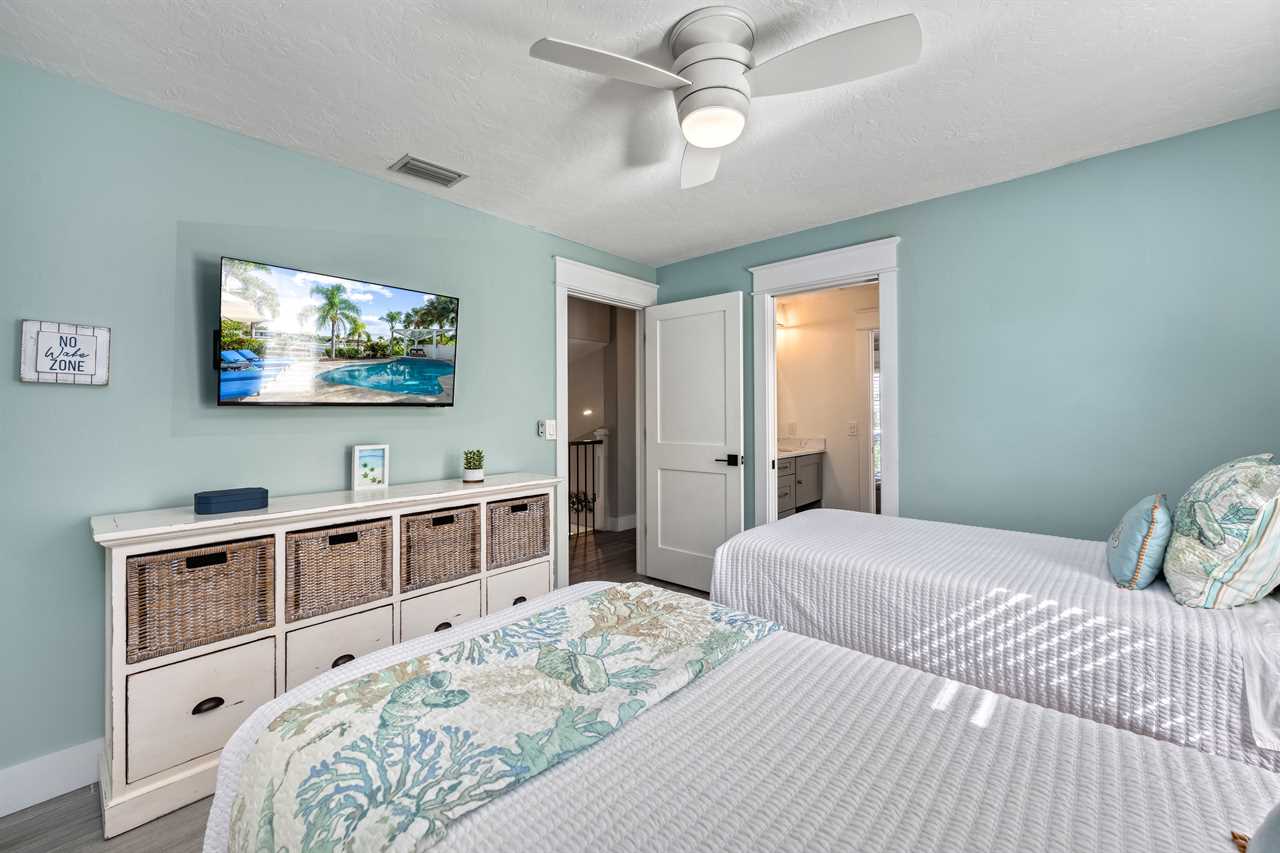 • Bedroom 4: 2 Twin Beds, Shared Bath, Upper Floor, TV