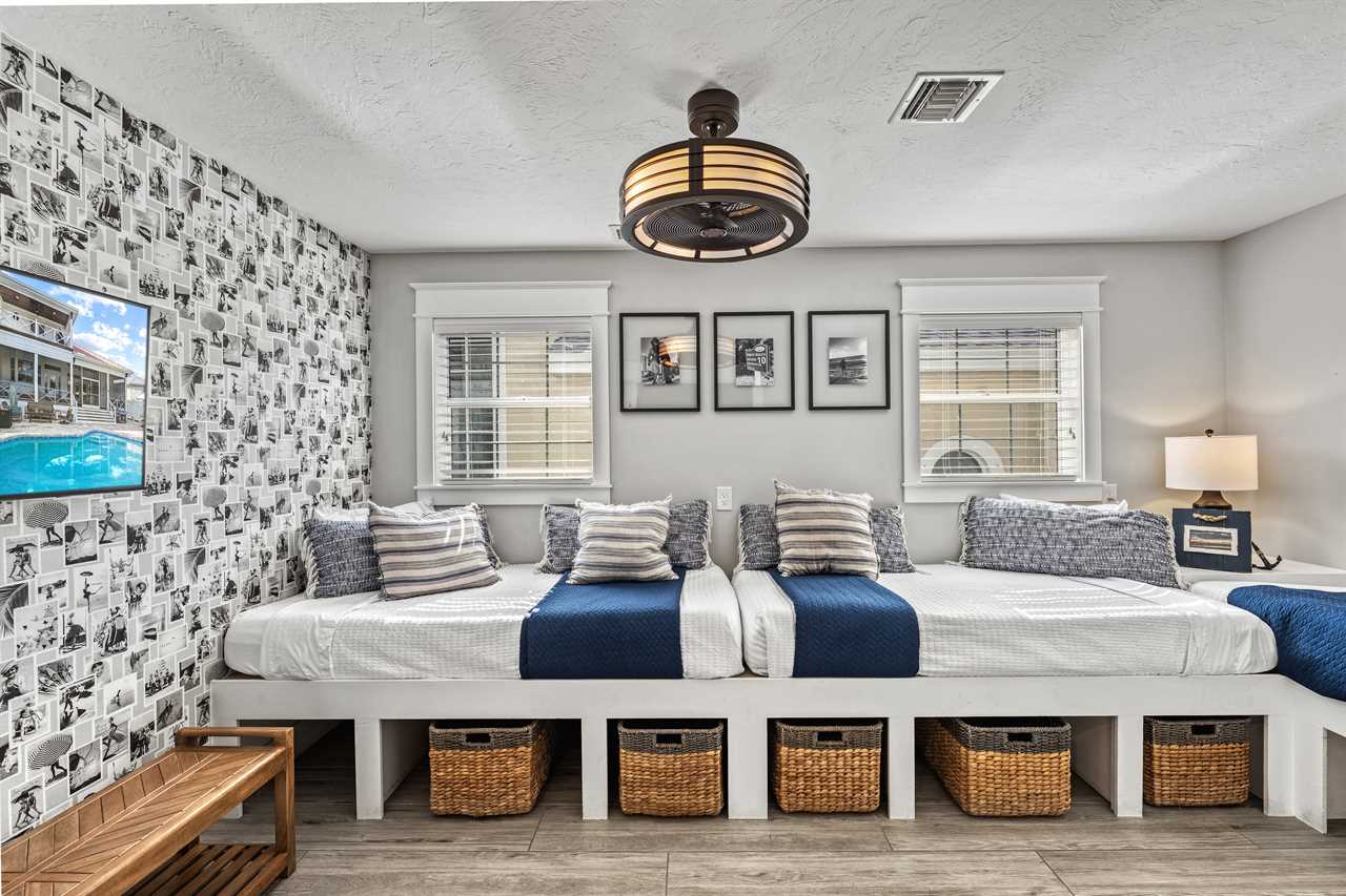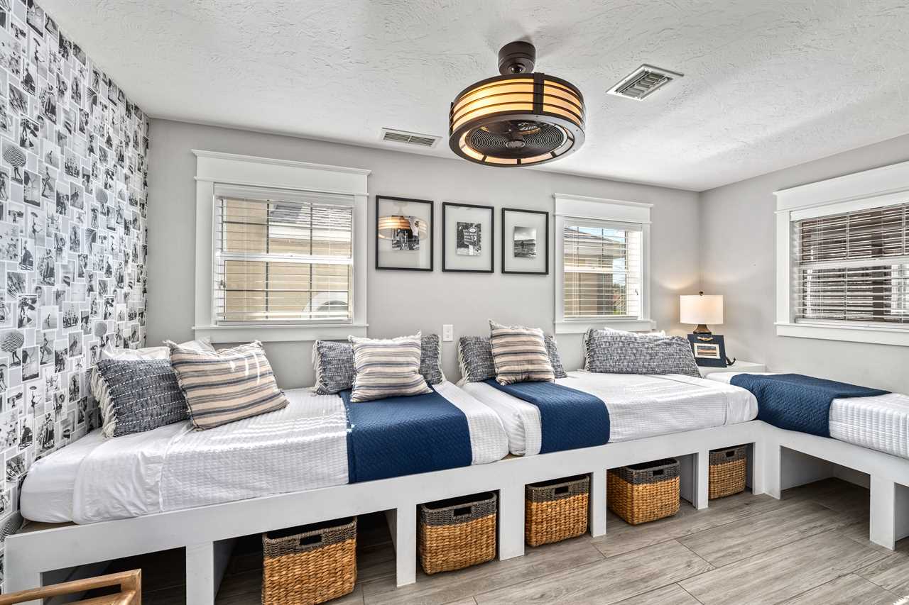 • Bedroom 5: 3 Twin Modular Beds, Shared Bath, Upper Floor, TV