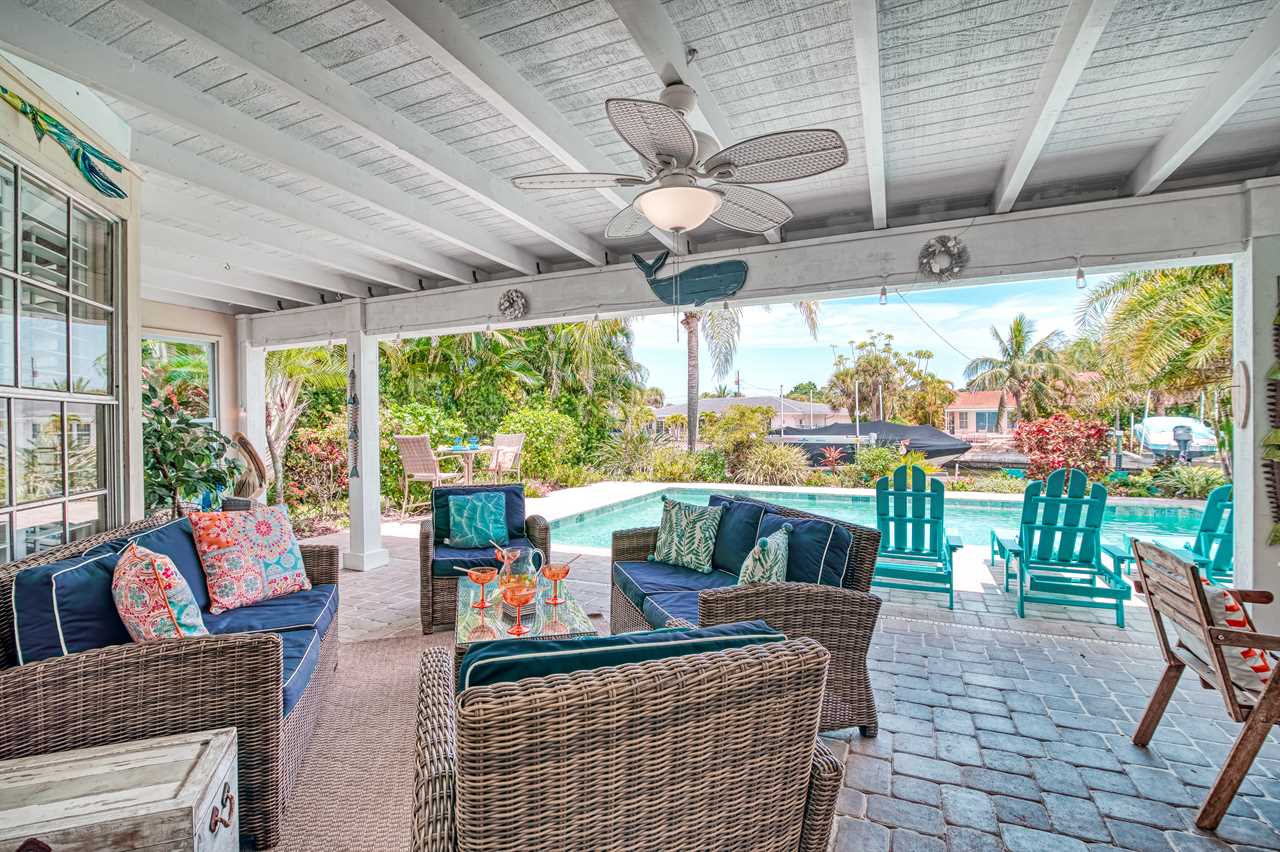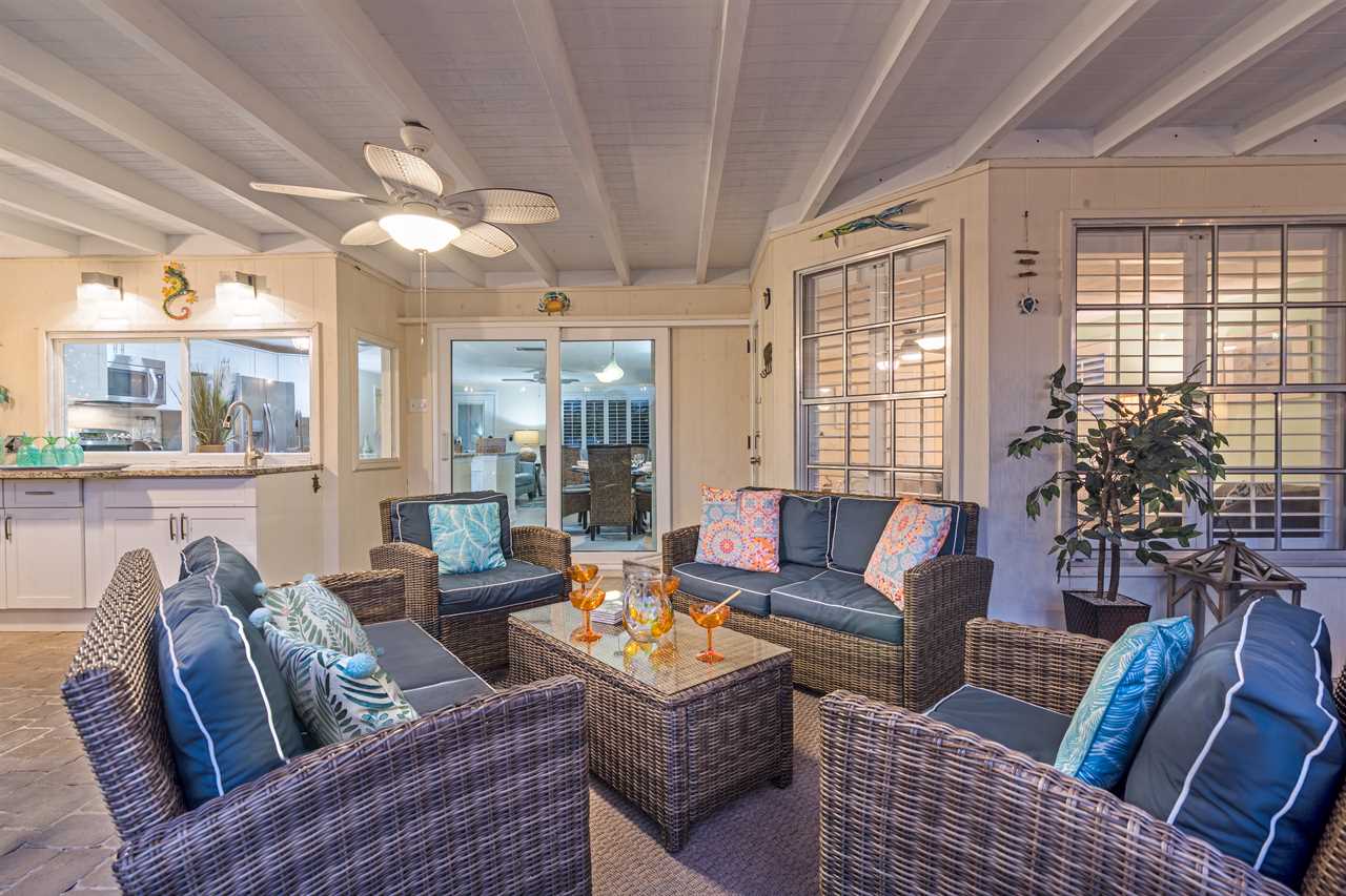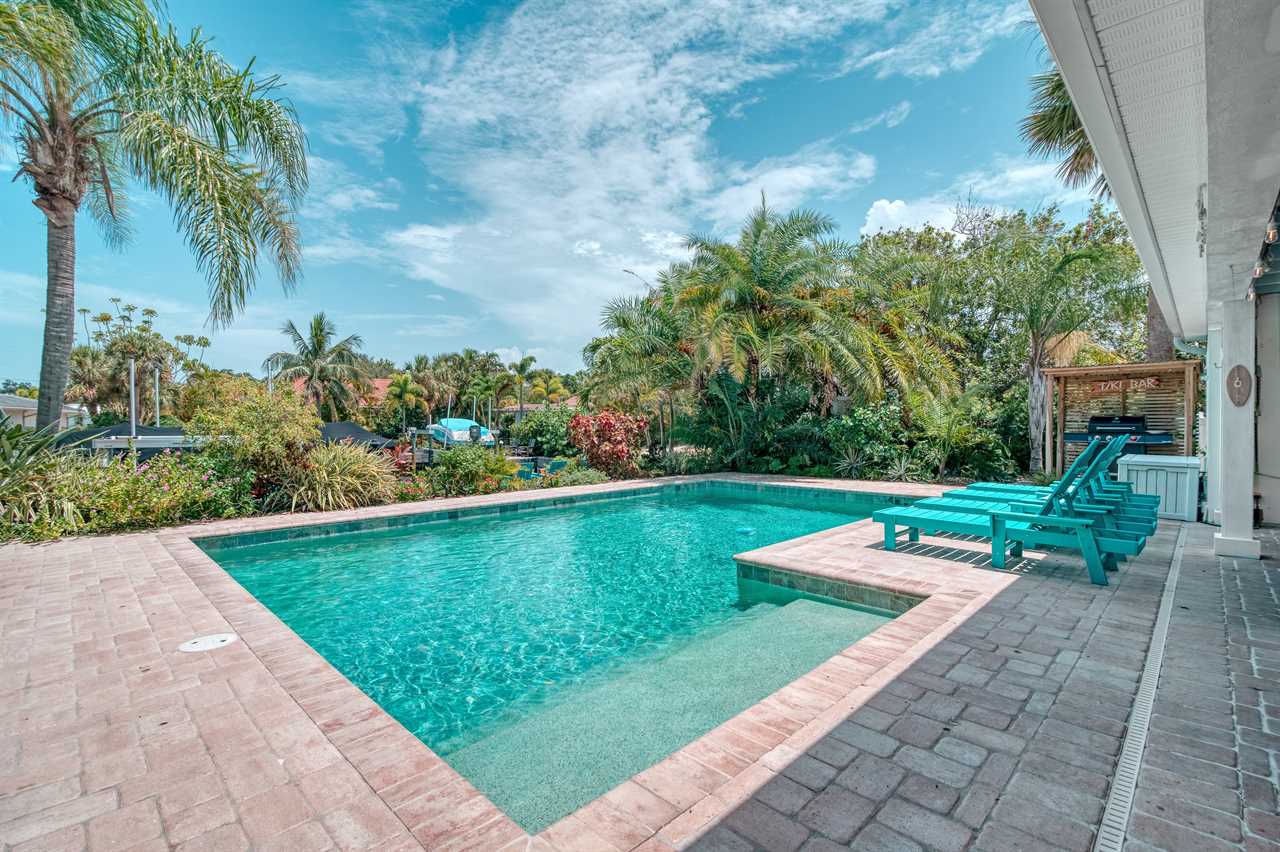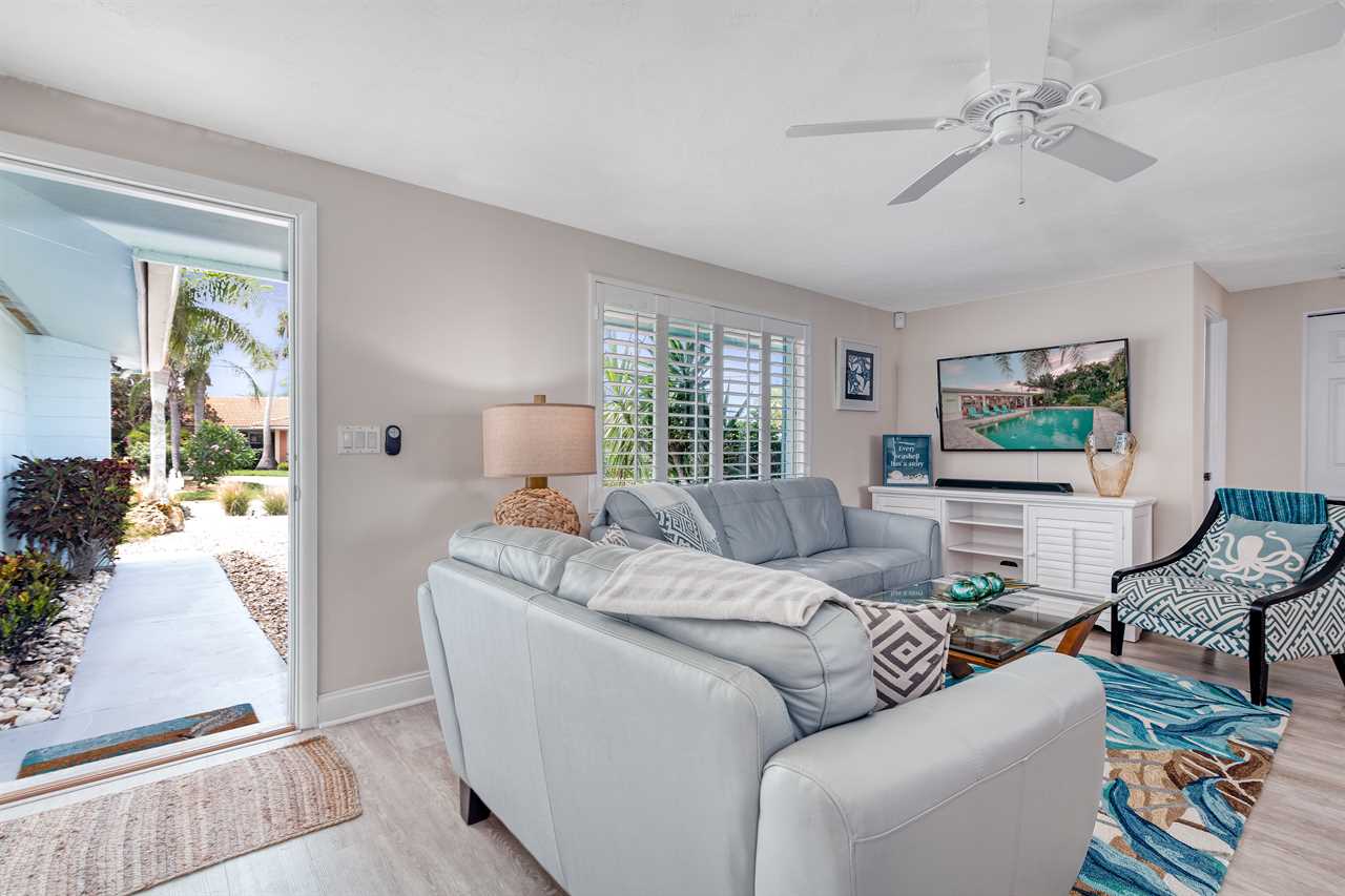 Your day begins with a gentle breeze drifting in as you relax on your covered back porch, watching the palms sway. After a leisurely breakfast prepared in the gourmet-grade kitchen with its convenient window pass-through to the patio, you gather your beach essentials—provided for your convenience—and take the short, invigorating 10-minute walk to Siesta Key Beach, feeling the world-famous white sands beneath your toes.