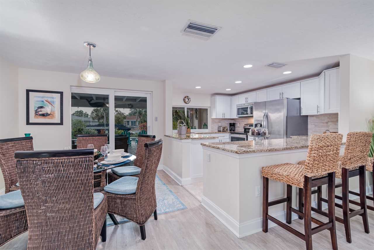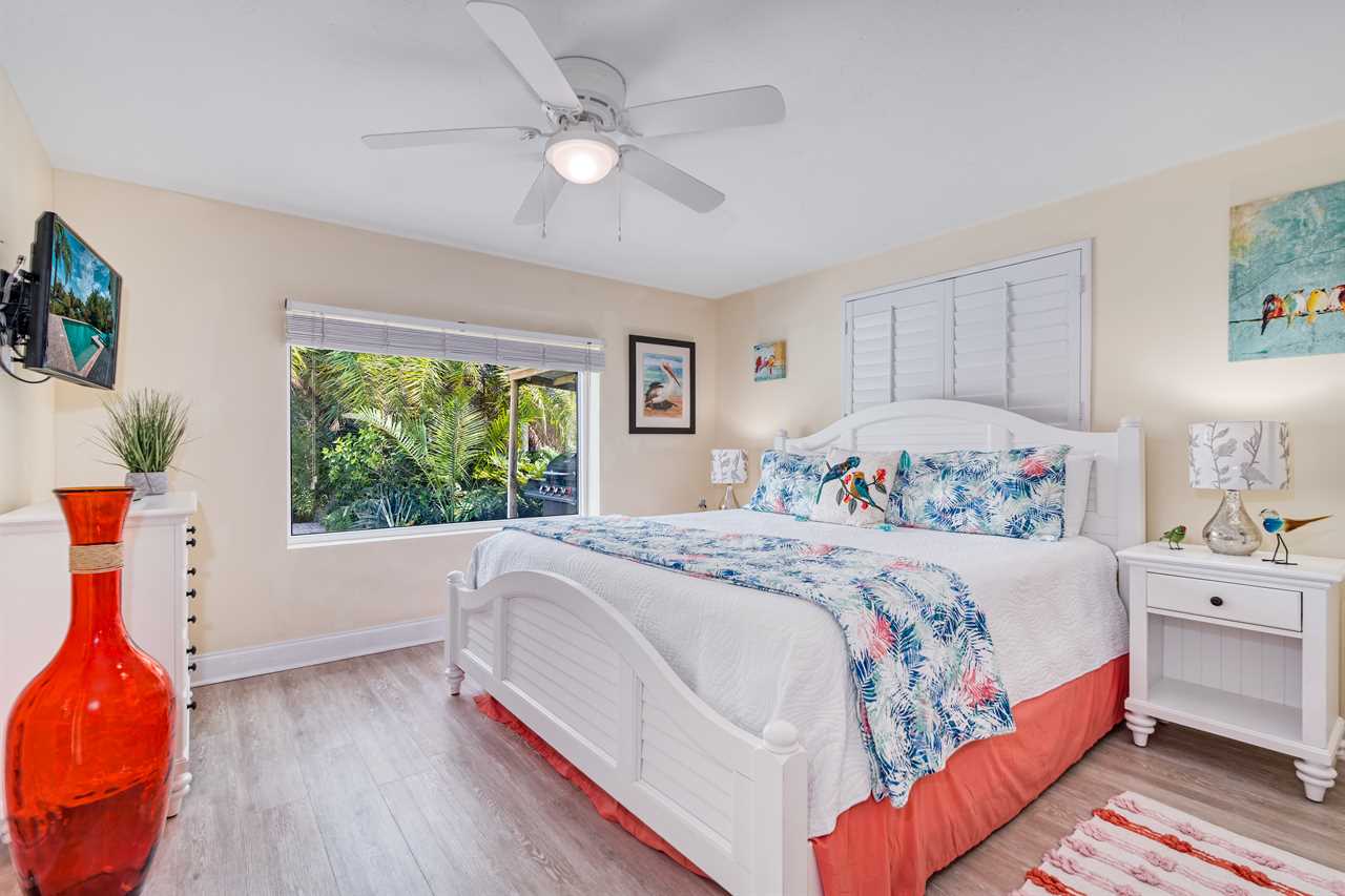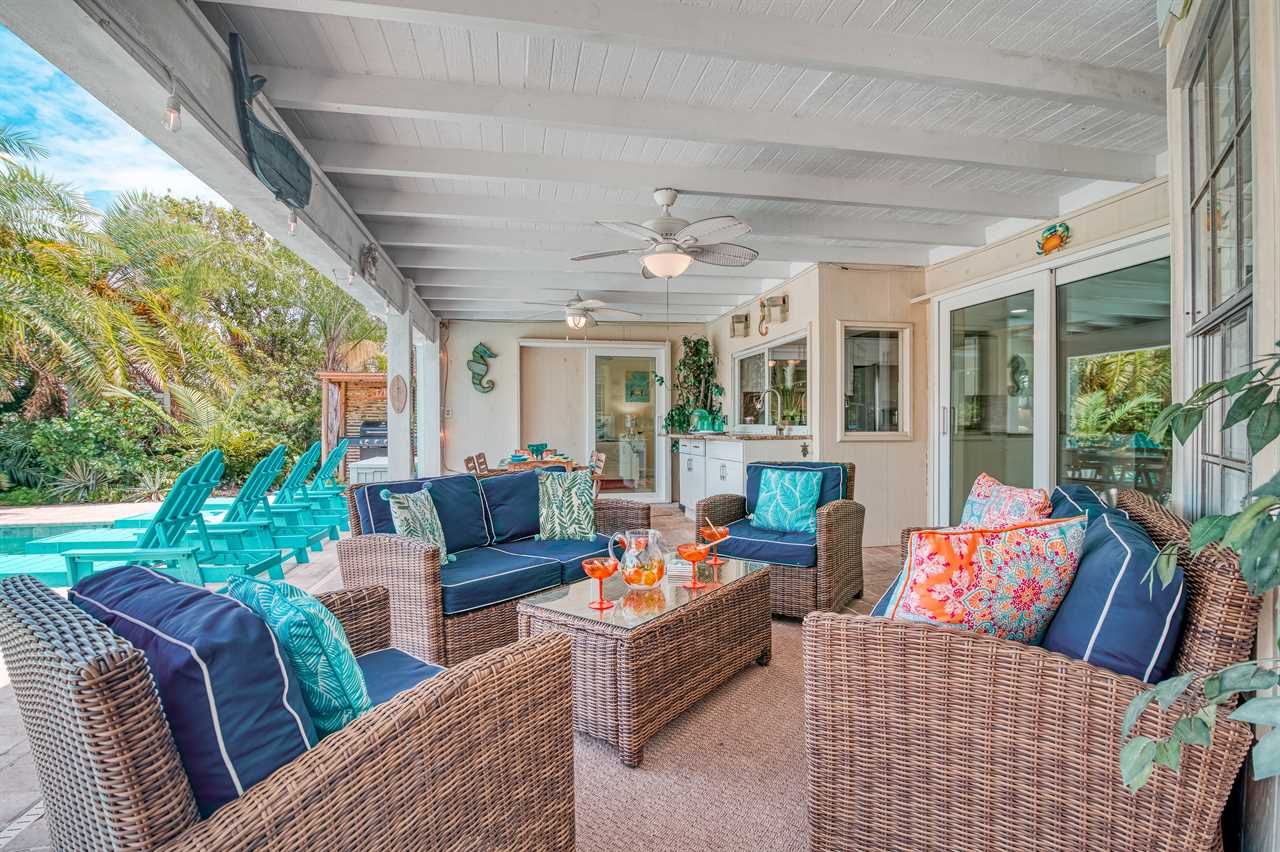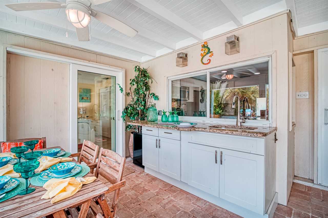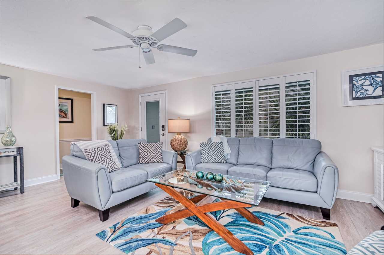 Your day begins with a gentle breeze drifting in as you relax on your covered back porch, watching the palms sway. After a leisurely breakfast prepared in the gourmet-grade kitchen with its convenient window pass-through to the patio, you gather your beach essentials—provided for your convenience—and take the short, invigorating 10-minute walk to Siesta Key Beach, feeling the world-famous white sands beneath your toes.