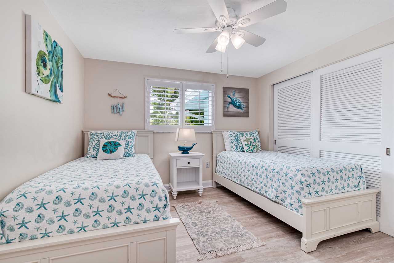 - Bedroom 3: Two Twin Beds, shared bath, main floor, TV