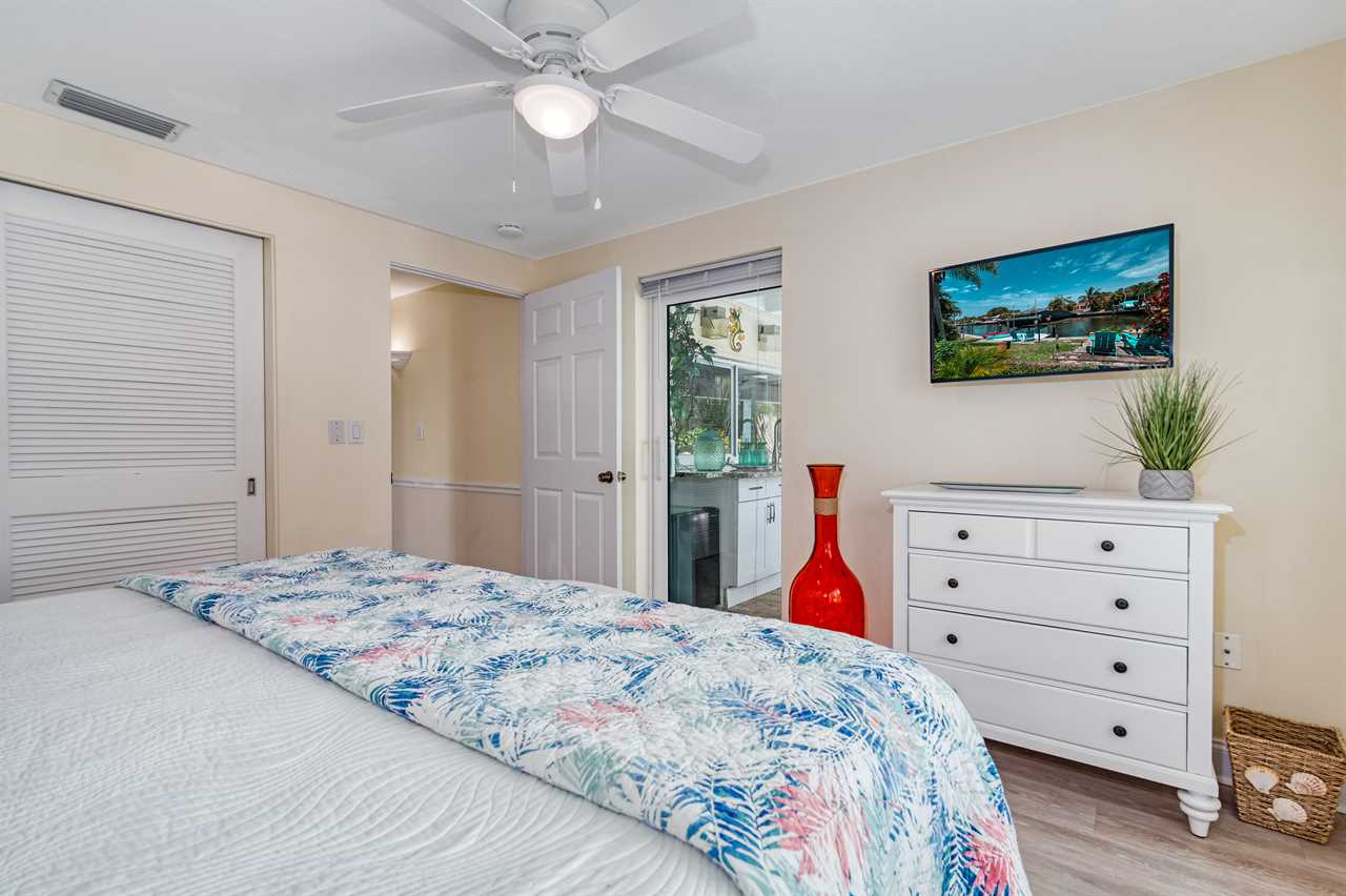 - Bedroom 1: King Bed, shared bath, main floor, TV