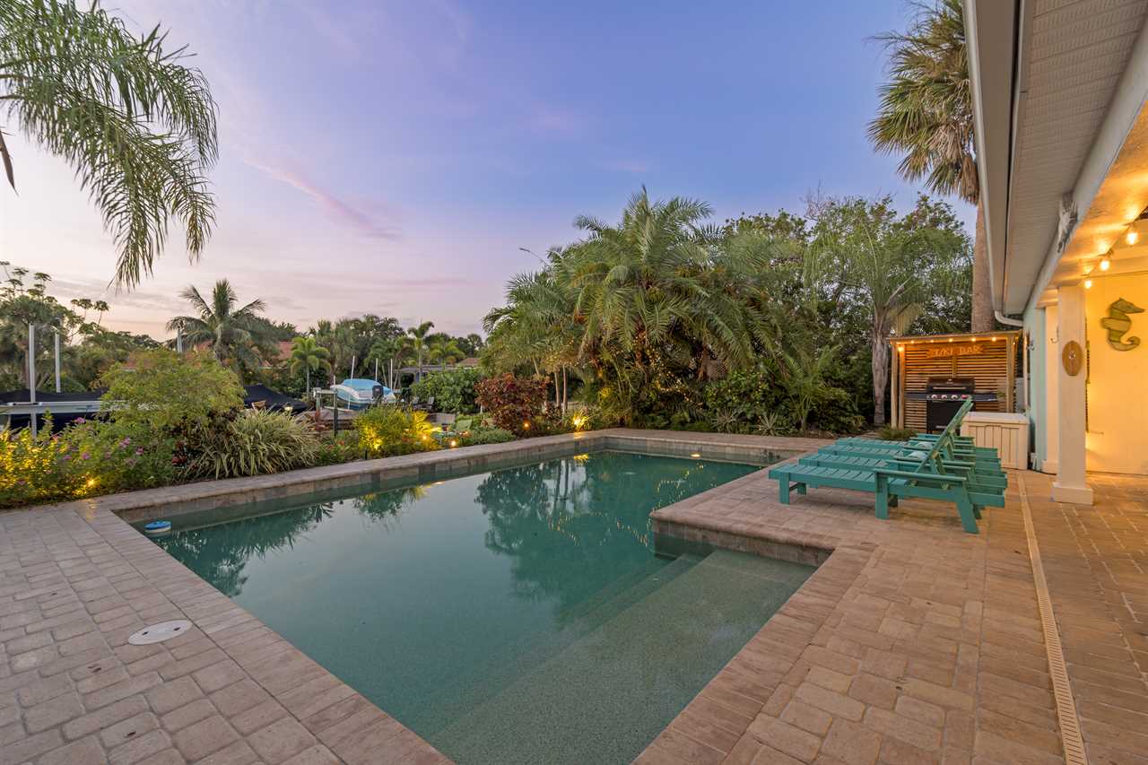 Back at La Contento Casa, the private heated pool is waiting, followed by an afternoon lounging by the water, perhaps with a drink crafted at your outdoor bar with sink. As evening approaches, the scent of a home-cooked meal fills the air, enjoyed alfresco with the canal views as your backdrop. Later, unwind in the spacious living area, sharing stories and laughter, before drifting off to sleep in one of the comfortable king beds, dreaming of another perfect day in paradise.