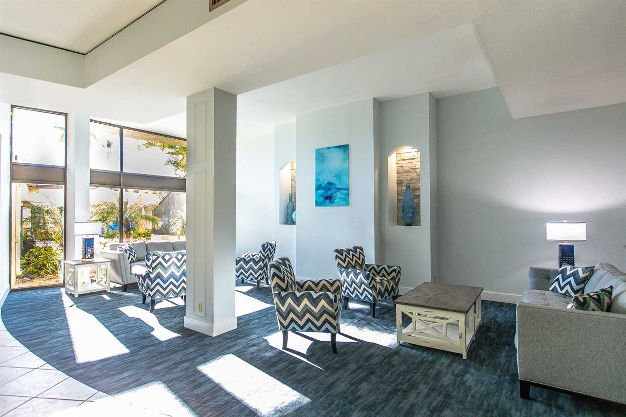 There is a large community party room with free Wi-Fi, a large screen TV, 4 outdoor barbecue grills, covered outdoor patio seating, indoor seating, an ice machine, and a wet bar.