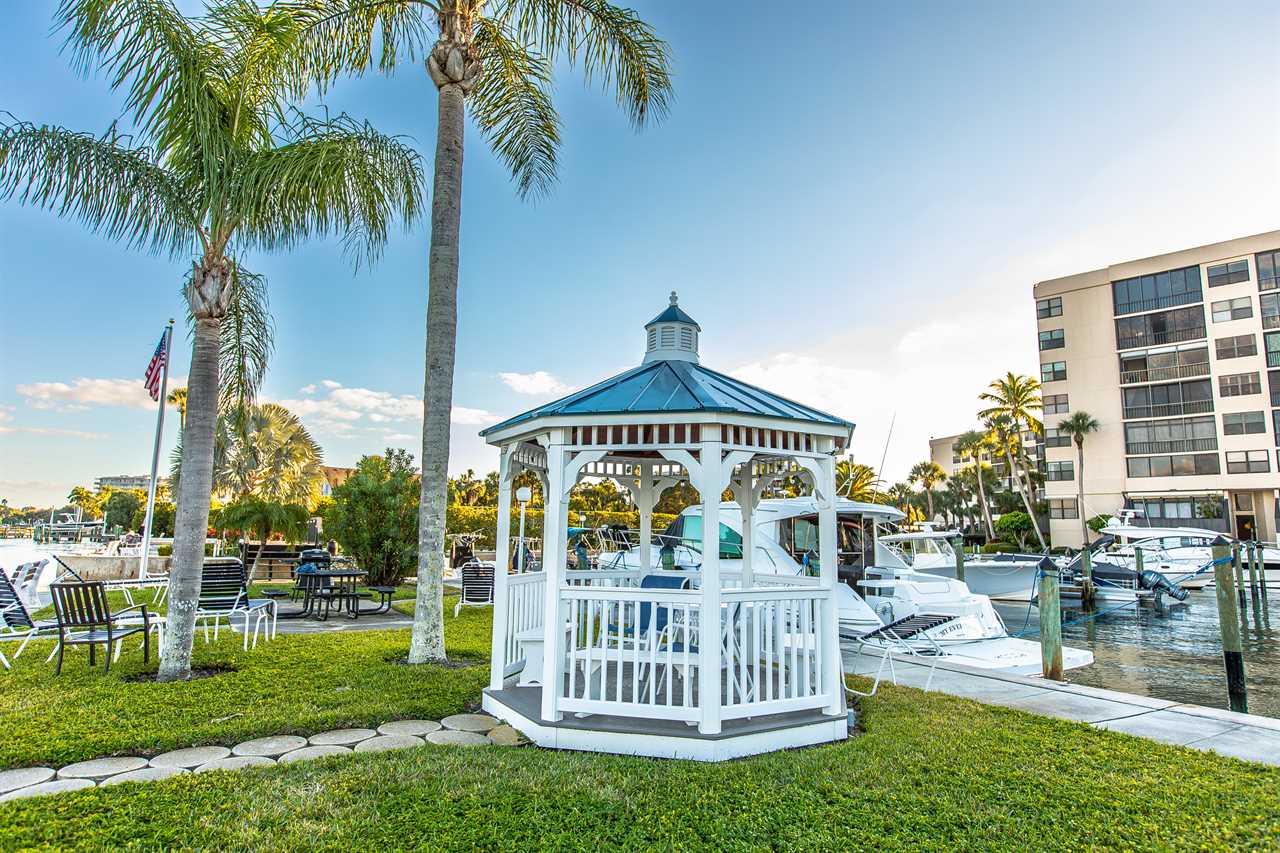 FUN is Harbor Towers. There are two heated pools on-site. One is larger for adult swimming and stand-in water visiting. The small pool is shallow for youngsters. There is a private Intracoastal island by the Yacht Marina. This includes a gazebo, outdoor seating, 2 barbecues, sea wall fishing, and benches for watching the boat traffic and diving pelicans.