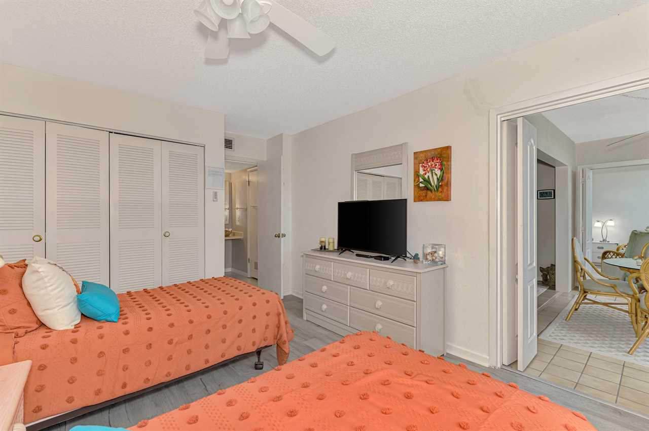 This fully equipped, well-maintained 2-bedroom, 2-bath condo. It offers a master suite with king bed, private bathroom, and walk-in closet. The second bedroom, located on the opposite side of the unit for privacy, offers 2 twin beds and a bathroom featuring a bathtub/shower combo. The living area features a full equipped kitchen, eating area and living room. There is tile flooring throughout the unit. The unit is equipped with cable, High speed internet, local phone, and 3 TVs.