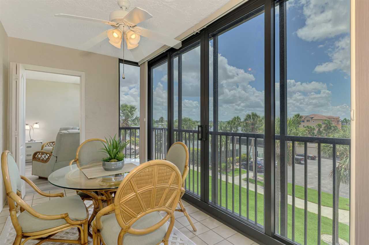 Enjoy coffee every morning or a drink in the evening on the 3rd floor floor shady screened-in balcony with beautiful Intracoastal & pool view!