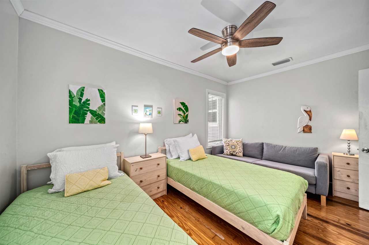 • Bedroom 3: Two Twin Beds, Shared Hall Bath, Ground Floor, TV