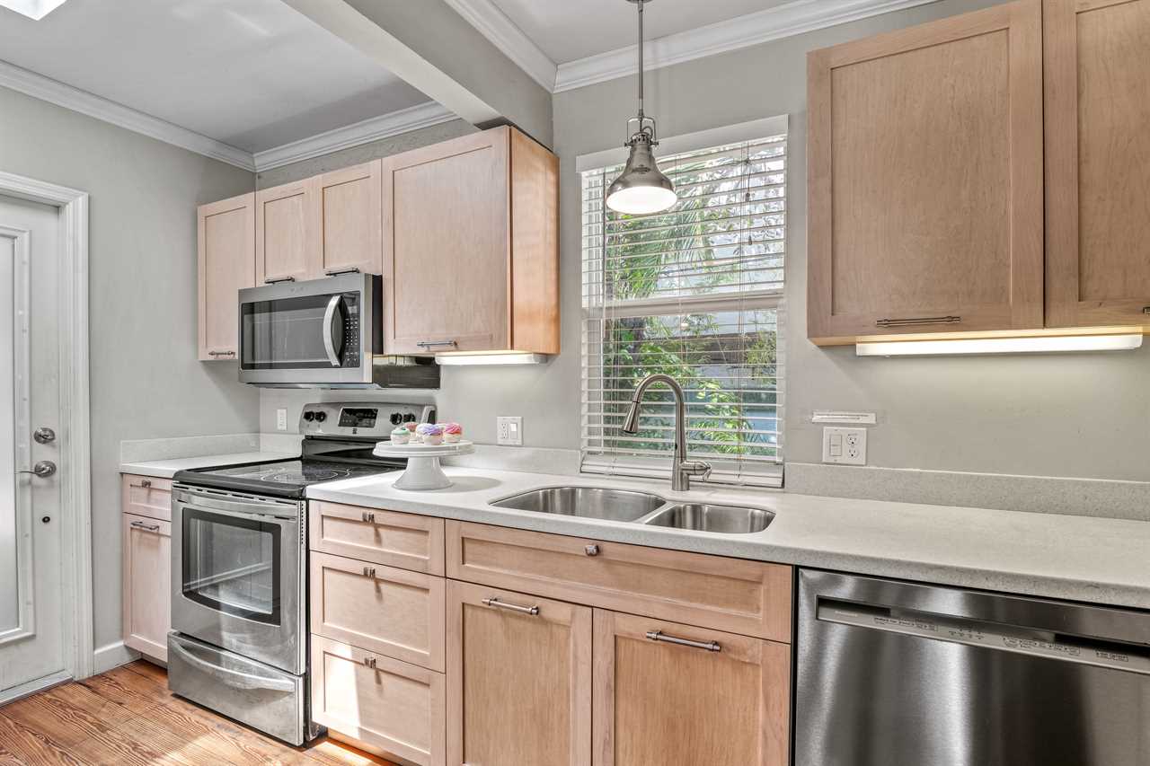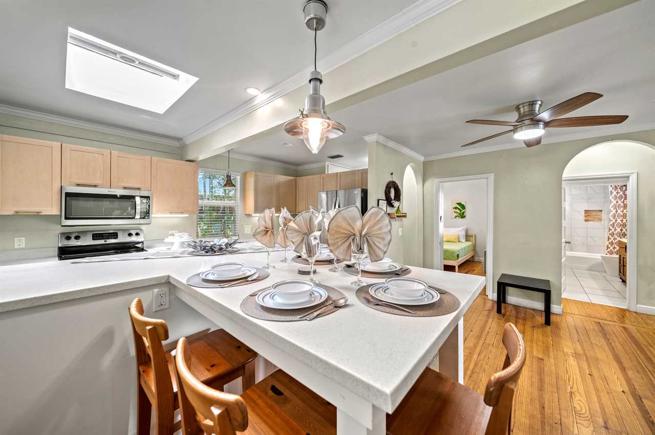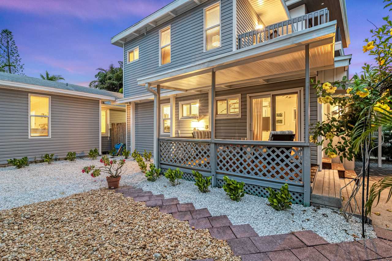 Come evening, gather around the outdoor table for a tropical dinner under the stars as food sizzles on the grill. Take a sunset stroll to the beach—just one block away.