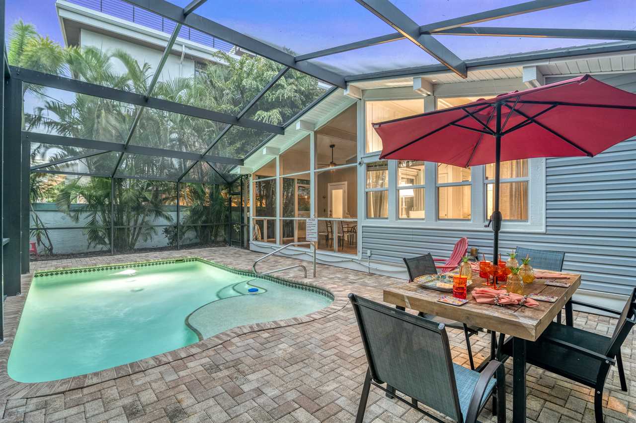 Two charming cottages, one unforgettable escape—Tropical Retreat brings together private indoor space and outdoor serenity just one block from Siesta Key Beach. With a screened-in heated pool, BBQ area, and alfresco dining, your group can unwind in complete exclusivity just steps from white sands and turquoise waters.