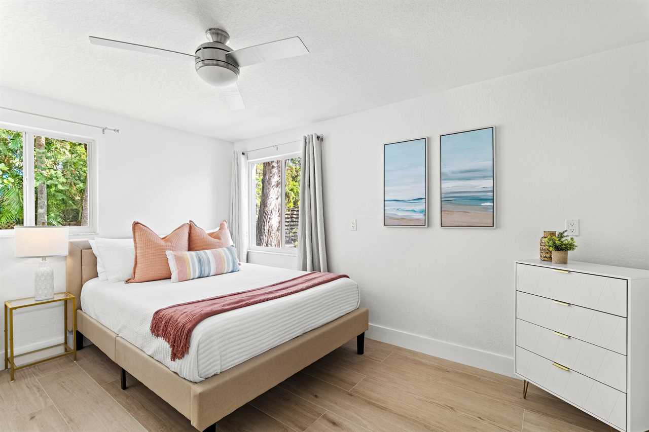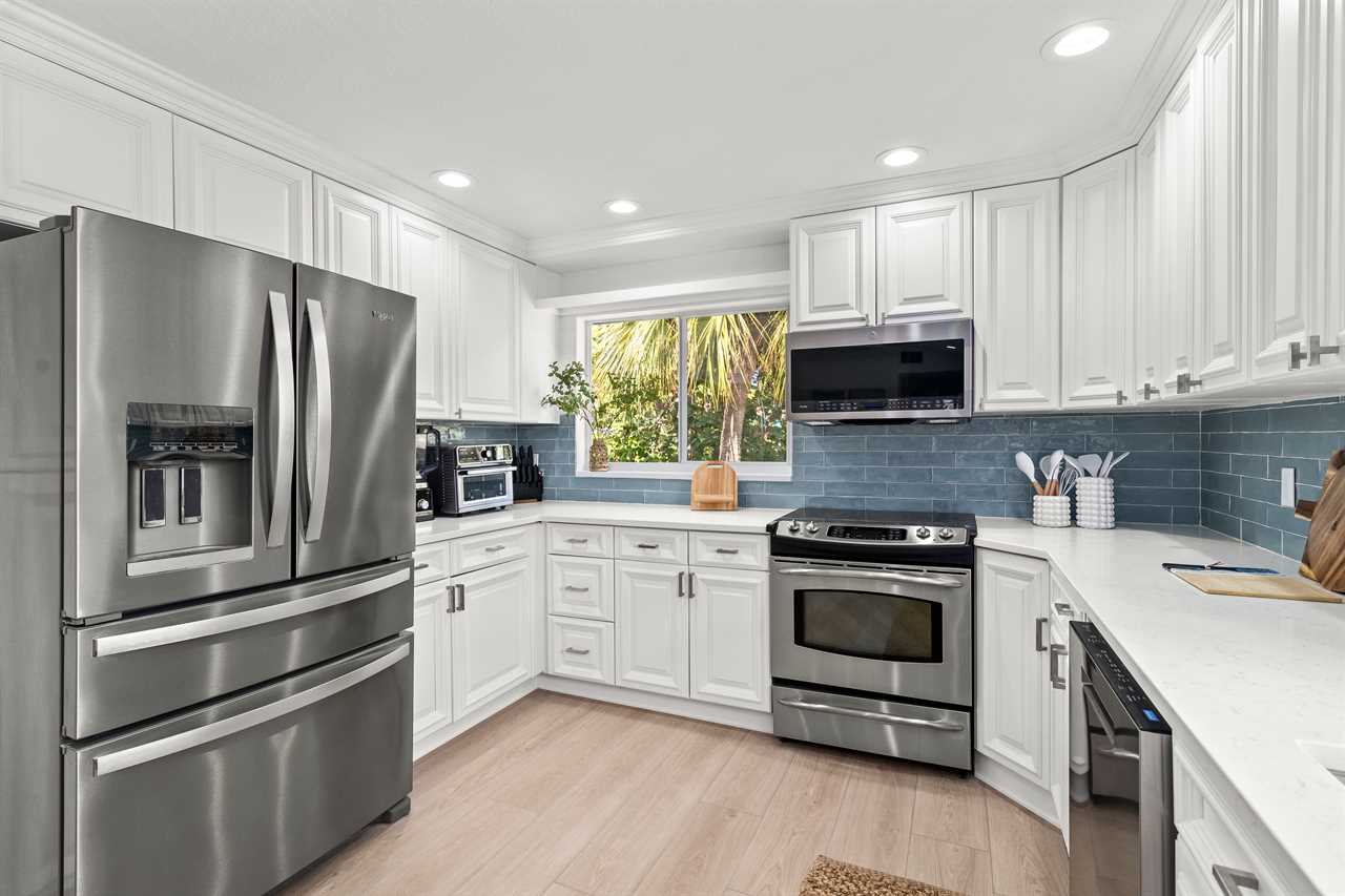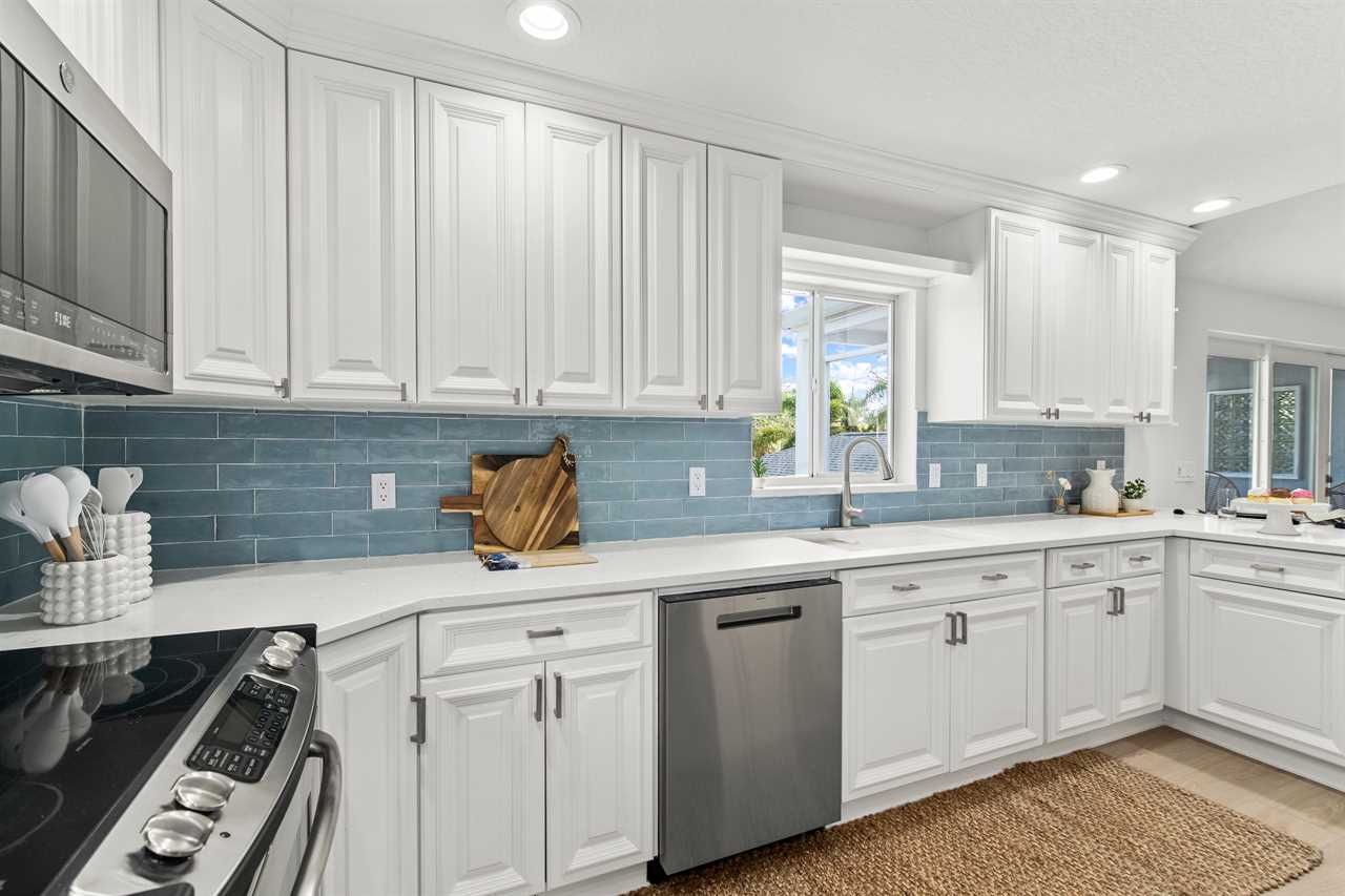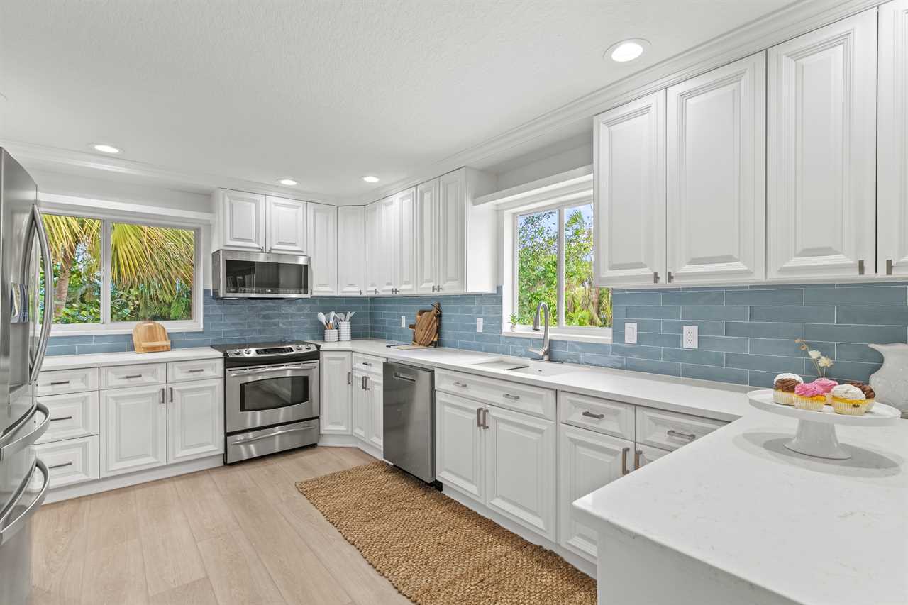 At the heart of the home is a chef-ready kitchen with modern appliances and everything you need to cook, dine, and entertain. Start your day with coffee from either the classic drip machine or Keurig, then enjoy a breezy breakfast outdoors as the palms rustle overhead.