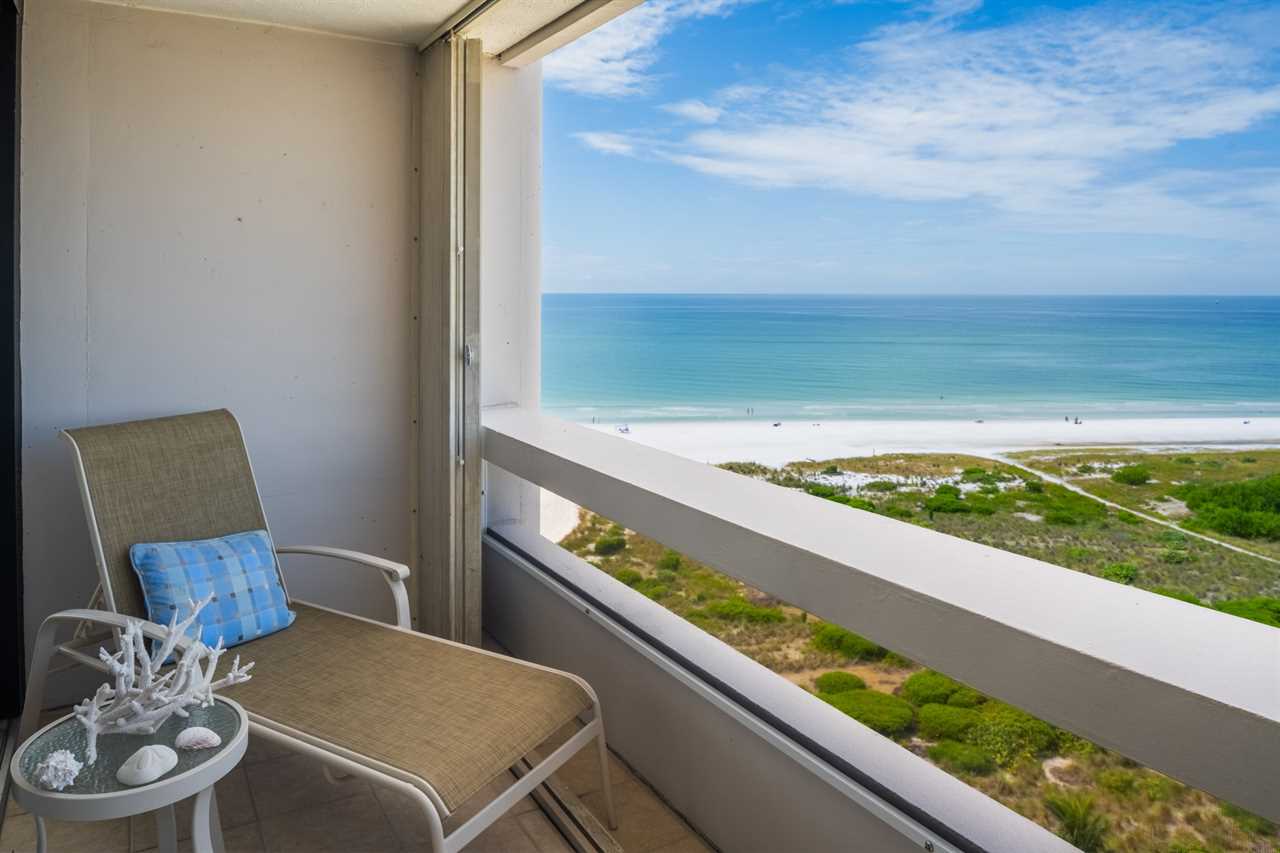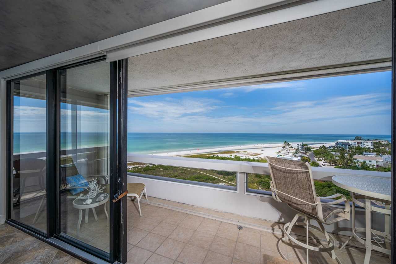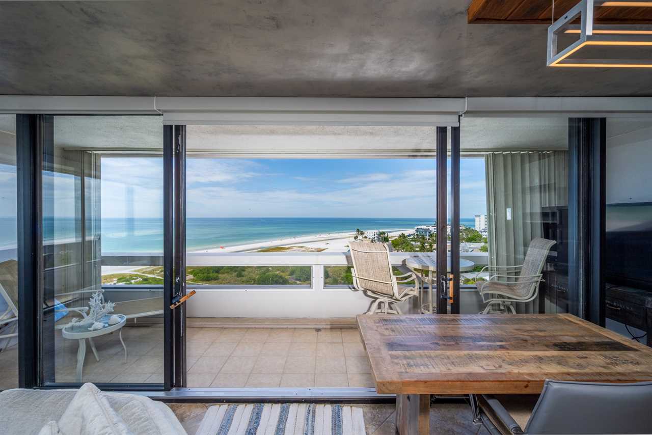 • Three private balconies with outdoor seating and panoramic views of Siesta Key Beach, Lido Key, and downtown Sarasota