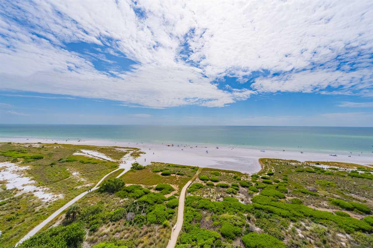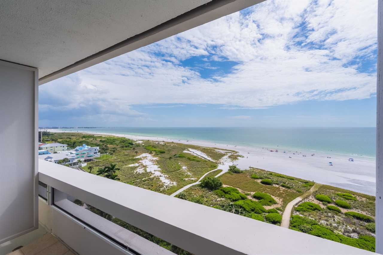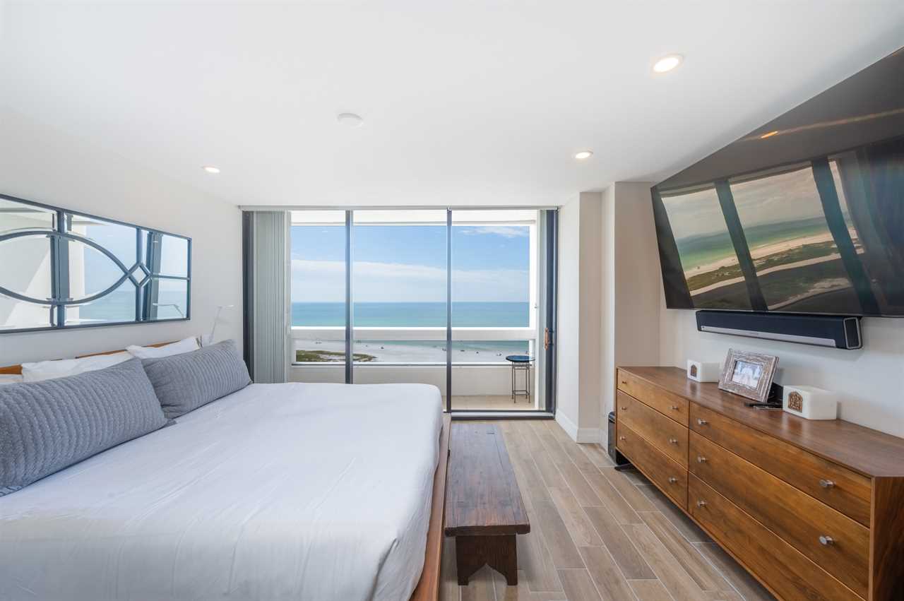 • Three private balconies with outdoor seating and panoramic views of Siesta Key Beach, Lido Key, and downtown Sarasota