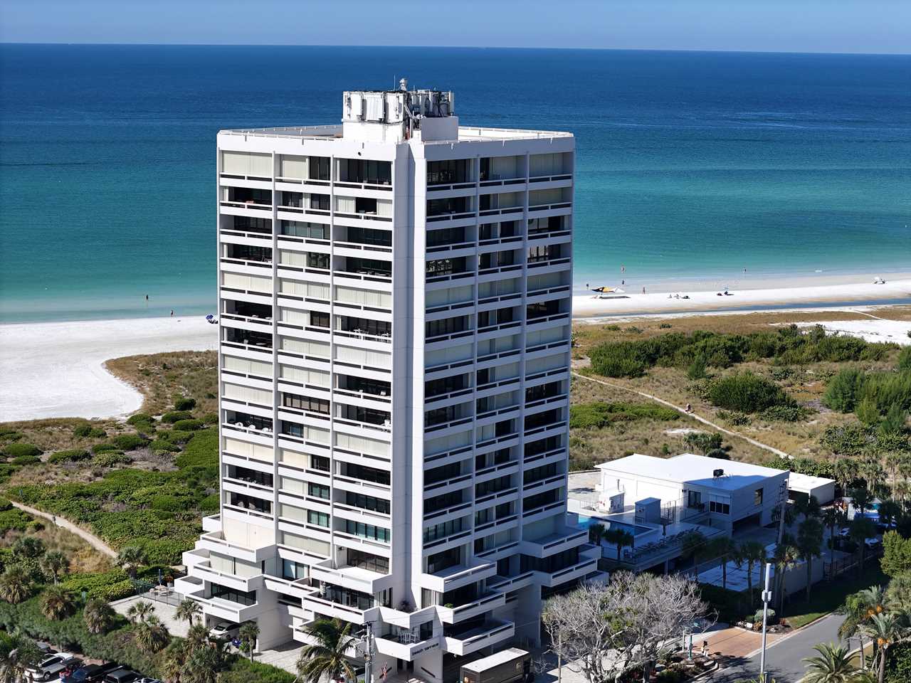 Situated at the corner of Ocean Boulevard and Beach Road, The Terrace offers the closest proximity to Siesta Key Village of any beachfront condominium, just steps from restaurants, live music, and boutique shopping. From your balcony, enjoy views stretching from Venice Pier to Anna Maria Island, with Sarasota's city skyline sparkling in the distance.
